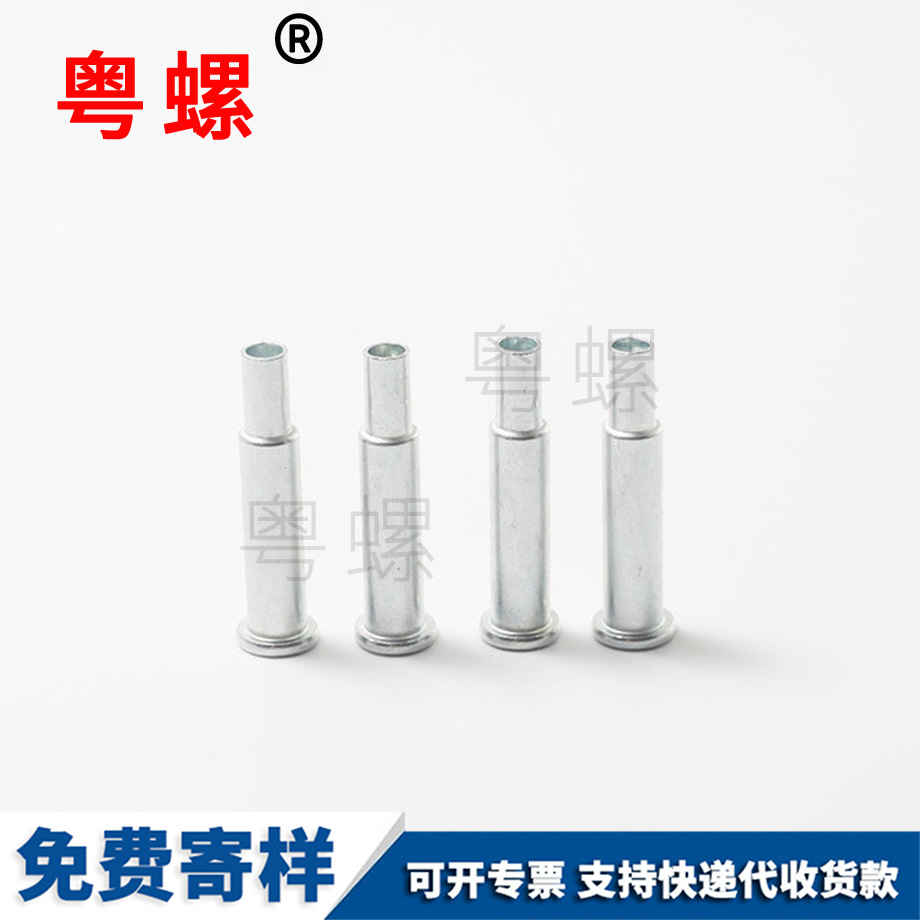 鉚釘多用于零件之間的固定鉚接、活動鉚接,用于活動鉚接的鉚釘?shù)尼斨酁閳A柱體,對鉚接的零件沒有尺寸限位,在鉚接時容易導(dǎo)致零部件擠壓產(chǎn)生變形,例如,零件插入零件中與其進(jìn)行活動鉚接,壓鉚時,鉚接施力很容易造成零件將零件夾緊,進(jìn)而造成零件與零件運動困難、操作力大和存在噪音的問題,且零部件極易損壞。
