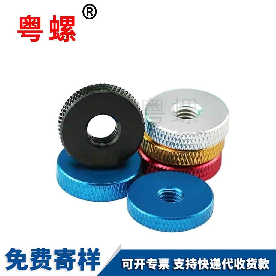 粵螺定制滾花鋁合金 單層手?jǐn)Q螺母 薄型小臺階螺母 氧化多色 M4